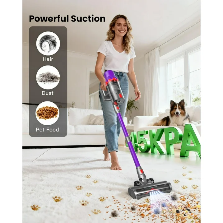 La aspiradora inalámbrica Hosaud está diseñada de manera diferente para resolver tus principales frustraciones: succión débil, enredos de cabello y corta duración de la batería.