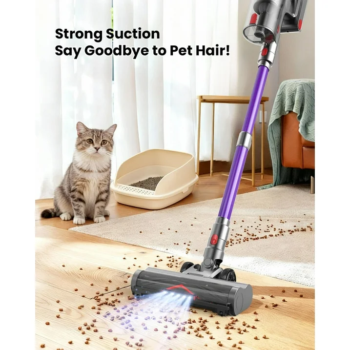 Viene con una fuerte potencia de succión, motor de 550W y cabezal de cepillo más denso con calidad mejorada, la aspiradora Hosaud puede levantar más fácilmente el pelo de mascotas, migas y desechos de alfombras, alfombras de pelo bajo, pisos de madera, pisos de baldosas, dormitorios y sofás. Proporciona una fuerte succión y un deslizamiento suave y sin rayones.