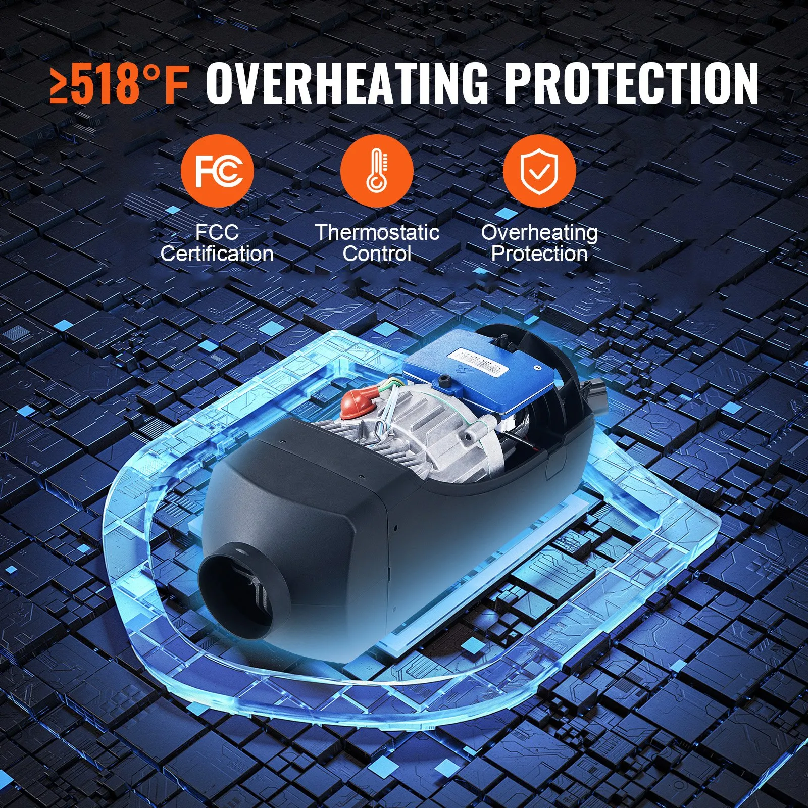 Seguro y confiable: Nuestro calentador de aire diésel cuenta con un sistema de alta seguridad que permite un uso sin preocupaciones en diversos entornos, como automóviles, autocaravanas y barcos. Ofrece control constante de temperatura, función de temporizador, transmisión de voz, precalentamiento y protección contra sobrecalentamiento a ≥270 °C/518 °F, lo que garantiza una experiencia segura y cómoda durante toda la noche.