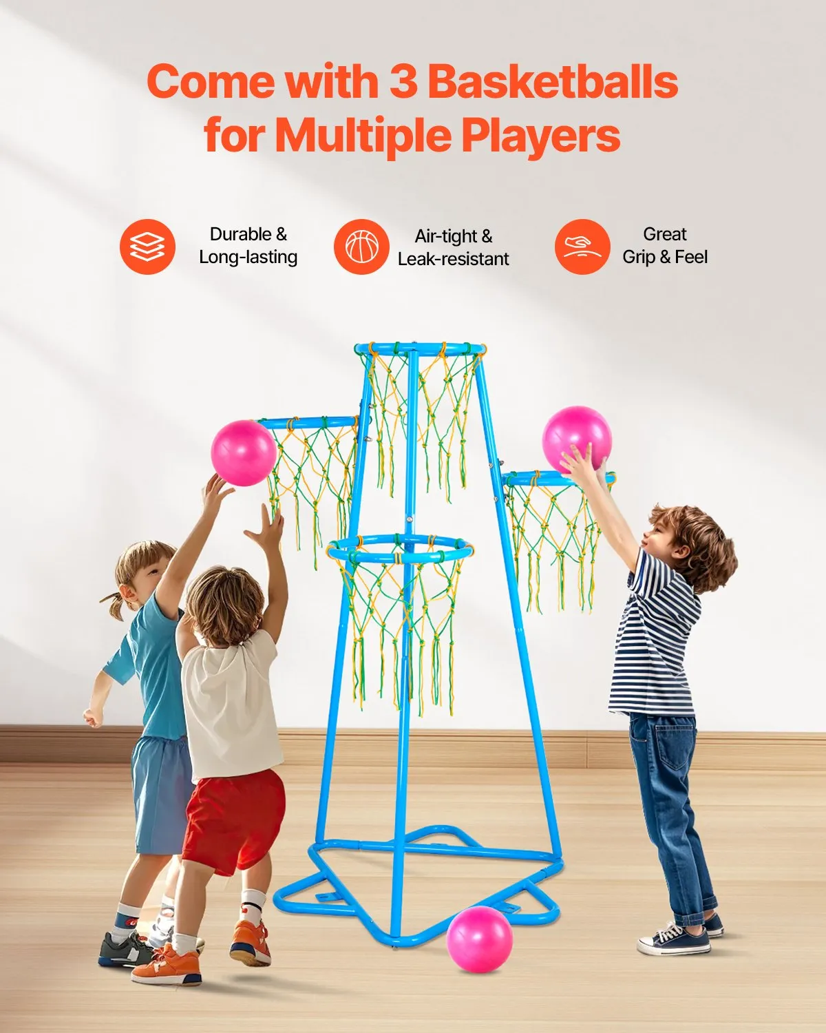 Base triangular reforzada: El marco de la canasta de baloncesto infantil está hecho de metal duradero, resistente a la oxidación y al desgaste. Esta base triangular reforzada mejora considerablemente la estabilidad, evitando que se tambalee o se vuelque durante el juego, garantizando así la seguridad de los niños mientras disfrutan del juego.