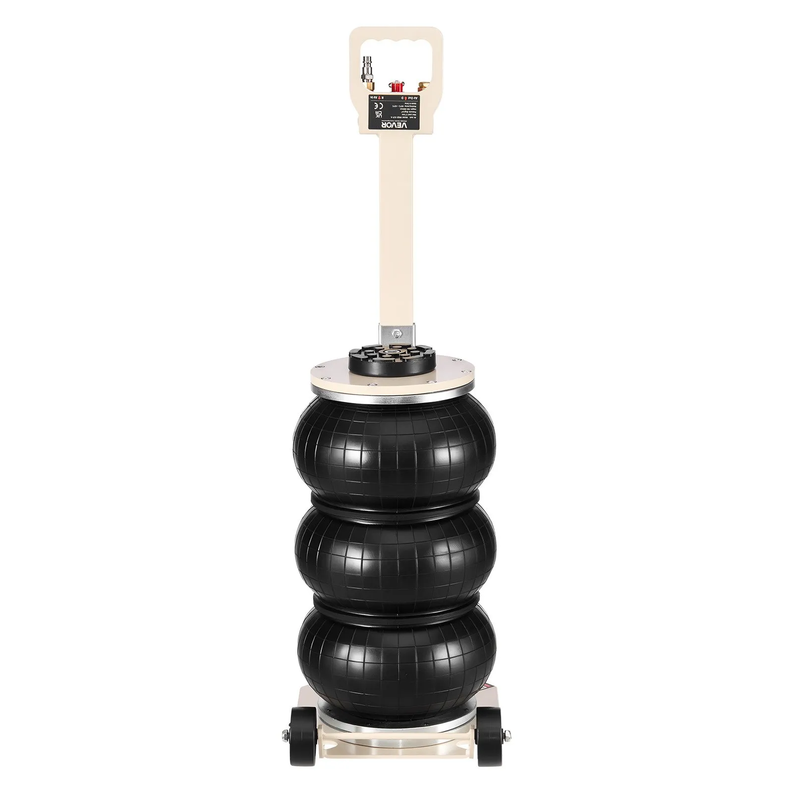Soporte seguro para el vehículo: La parte superior del gato neumático incluye una almohadilla de goma gruesa que se adhiere firmemente al punto de contacto del coche para una sujeción segura y antideslizante que protege el chasis. La válvula viene con acopladores de 1/4 de pulgada (EE. UU. y UE), compatibles con compresores de aire de 0,8 a 1,0 MPa.