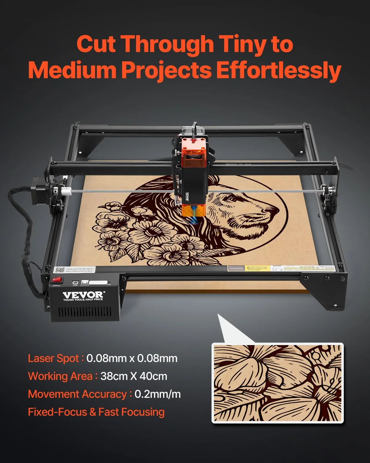 Precisión y artesanía combinadas: Nuestra máquina de grabado láser incorpora tecnología láser innovadora y compresión de puntos, lo que proporciona resultados más rápidos y precisos para todas sus necesidades de grabado. El haz láser de 0,08 x 0,08 mm garantiza una energía concentrada y un grabado y corte más finos y fáciles. Con un motor paso a paso y una transmisión por correa síncrona, alcanza velocidades de grabado de hasta 10 000 mm/min.