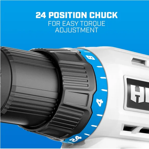 • Taladro de 1/2″: embrague de engranajes de 24 posiciones para ajustes precisos del torque del taladro
