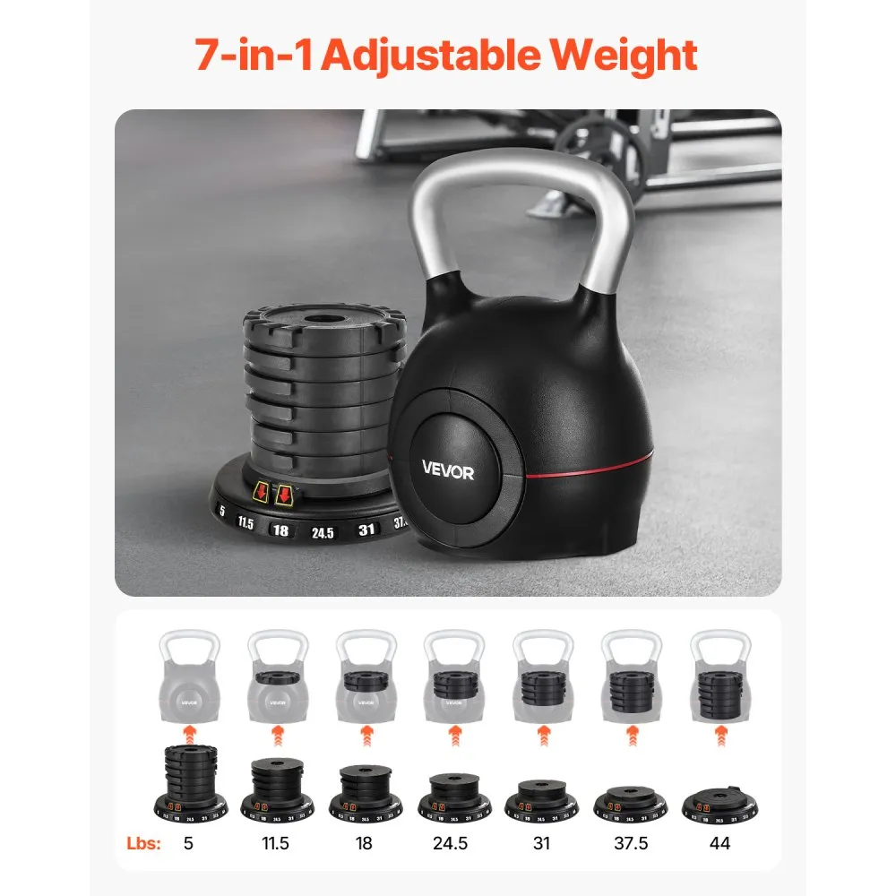Pesa rusa, pesa rusa ajustable con 7 niveles de peso (5, 11.5, 18, 24.5, 31, 37.5, 44 lbs), aluminio fundido a presión y material ABS, para entrenamiento de fuerza de agarre, entrenamiento de cuerpo completo y entrenamiento cruzado.